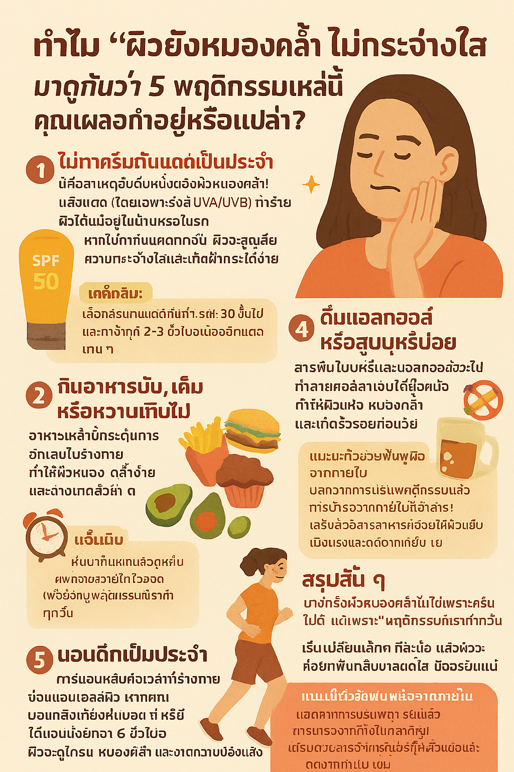 หลายคนตั้งใจดูแลผิวให้ใสทุกวัน แต่กลับสงสัยว่าทำไม “ผิวยังหมองคล้ำ ไม่กระจ่างใส” ทั้งที่ก็ทาครีมทุกเช้า ดื่มน้ำเยอะ และนอนพอ