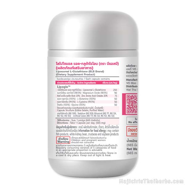 Liposomal L-Glutathione สูตรลิขสิทธิ์ LipoGlo จากนวัตกรรม Nano-Encapsulation ที่ห่อหุ้มกลูต้าด้วยฟอสโฟลิปิดเลียนแบบผนังเซลล์ ทำให้ ดูดซึมรวดเร็ว ไม่ถูกทำลายในกระเพาะ และส่งตรงเข้าสู่ตับและเซลล์เป้าหมายอย่างมีประสิทธิภาพ