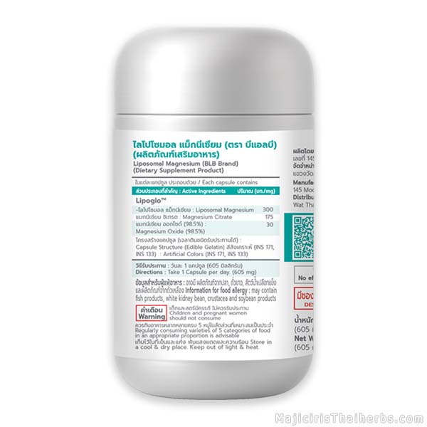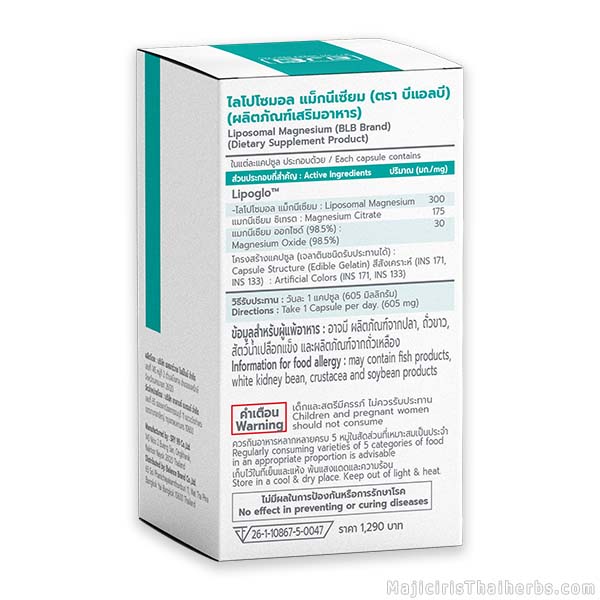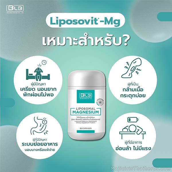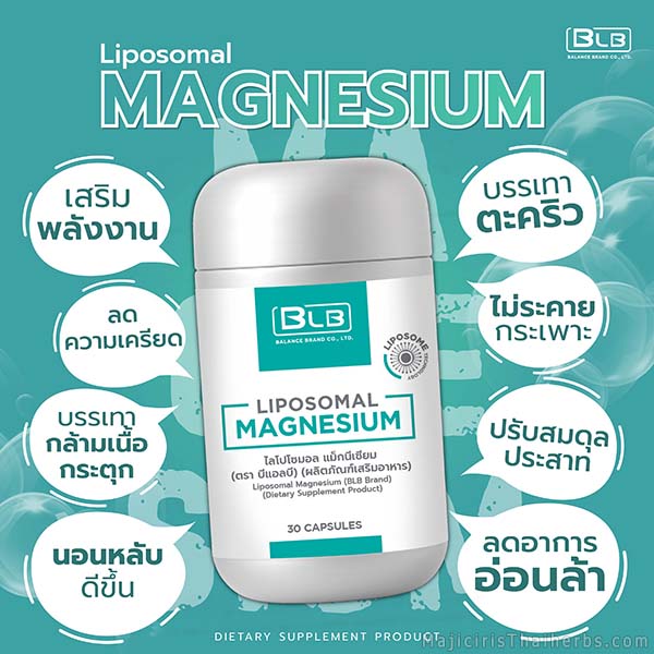ไลโปโซมอล แมกนีเซียม Liposomal Magnesium Mg ผลิตภัณฑ์เสริมอาหารตราบีแอลบี (BLB)
