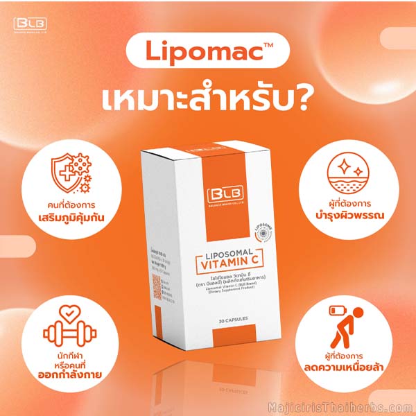Liposomal Vitamin C LIPOMAC จากเยอรมนี ดูดซึมดีกว่าวิตามินซีทั่วไปหลายเท่า ผิวสวย ภูมิแข็งแรงในเม็ดเดียว