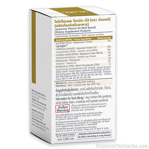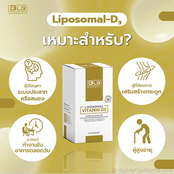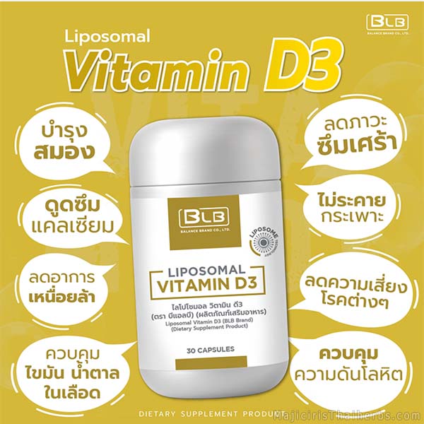 เสริมความแข็งแรงให้ร่างกายอย่างรอบด้าน ด้วย Liposomal Vitamin D3 ที่ใช้วัตถุดิบลิขสิทธิ์ Liposovit®-D3 จากยุโรป ผ่านเทคโนโลยี Encapsulation ห่อหุ้มวิตามินไว้ในฟองไขมันนาโน เพื่อช่วยให้ร่างกายดูดซึมได้เต็มที่ ไม่ถูกทำลายในระบบย่อยอาหาร และส่งตรงเข้าสู่เซลล์อย่างมีประสิทธิภาพ