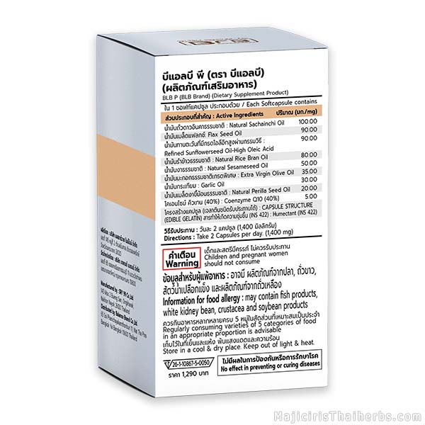 Balance P (BLP) ผลิตภัณฑ์เสริมอาหารในรูปแบบแคปซูลน้ำมัน ที่ผสานสุดยอดกรดไขมันดีจากพืชธรรมชาติ 9 ชนิด ไว้ในสูตรเดียว เพื่อดูแลสุขภาพหัวใจและหลอดเลือดอย่างรอบด้าน