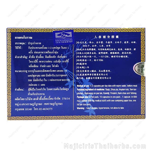 วิธีรับประทาน : วันละ 1 ครั้ง ก่อนนอน ครั้งละ 1–2 แคปซูล พร้อมดื่มน้ำอุ่น